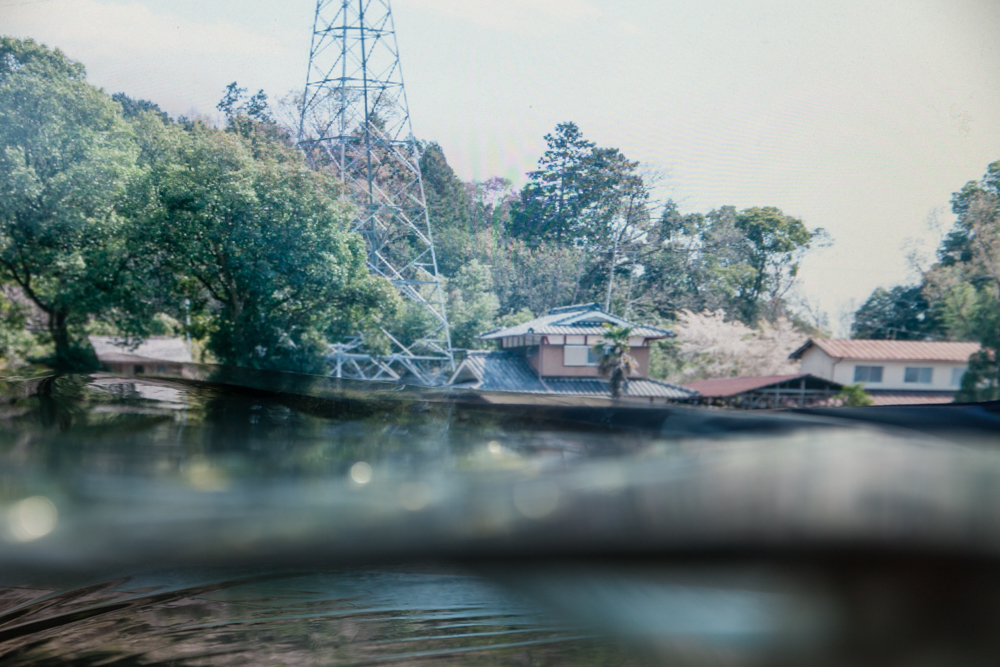 私はこのような感覚を、PCスクリーンとその手前のカメラとの間にハーフミラーを使って架空の水面をつくることで表現しました。たった数十センチ先から放たれたはずのピクセル光が、真夜中に眺める水槽の輝きのようにゆらぎ、一日の終りを静かにしめくくることができる自分だけの安らぎの風景に変わるのです。